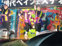 | 21日の網代ベイフェスティバルは、網代漁港の前の広場で行われました。 開始時刻前より雲行きが怪しかったのですが、案の定子供たちの太鼓披露の前より、 大粒の雨が降ってきてしまいまいした。でも子供たちは雨にも負けず、精一杯太鼓をたたき続けました |