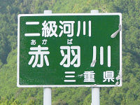 | 二級河川の赤羽川です。赤羽の名前の付く川は、全国でここだけです。上流には宮川ダムと宮川発電所があります。カヌーを楽しむ人もいます。橋の上にトンビがいました。 |