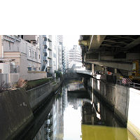 現在の古川は、上を首都高速環状線が通り日当りが悪く、都市部の多くの川と同様に生物が住みにくい環境です。それは、人間にとっても全く同じ事なんですが残念でなりません。 |