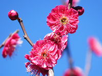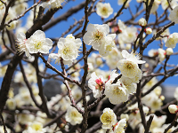 梅は、万葉集にも多く詠まれ、日本人に最も好まれる花木の一つです。梅のいい香りが漂っていました。約70本の白梅・紅梅は、江戸時代から新宿角筈にあった「銀世界」と呼ばれた梅林を、明治41〜42年頃に移植したという由緒があります。メジロが梅の花の間を飛び回っていました。