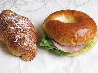 | 尾道水道に面しているパンのなる木です。ライ麦を使ったハード系が主です。クロワッサンとベーグルのサンドをいだだきました。 |